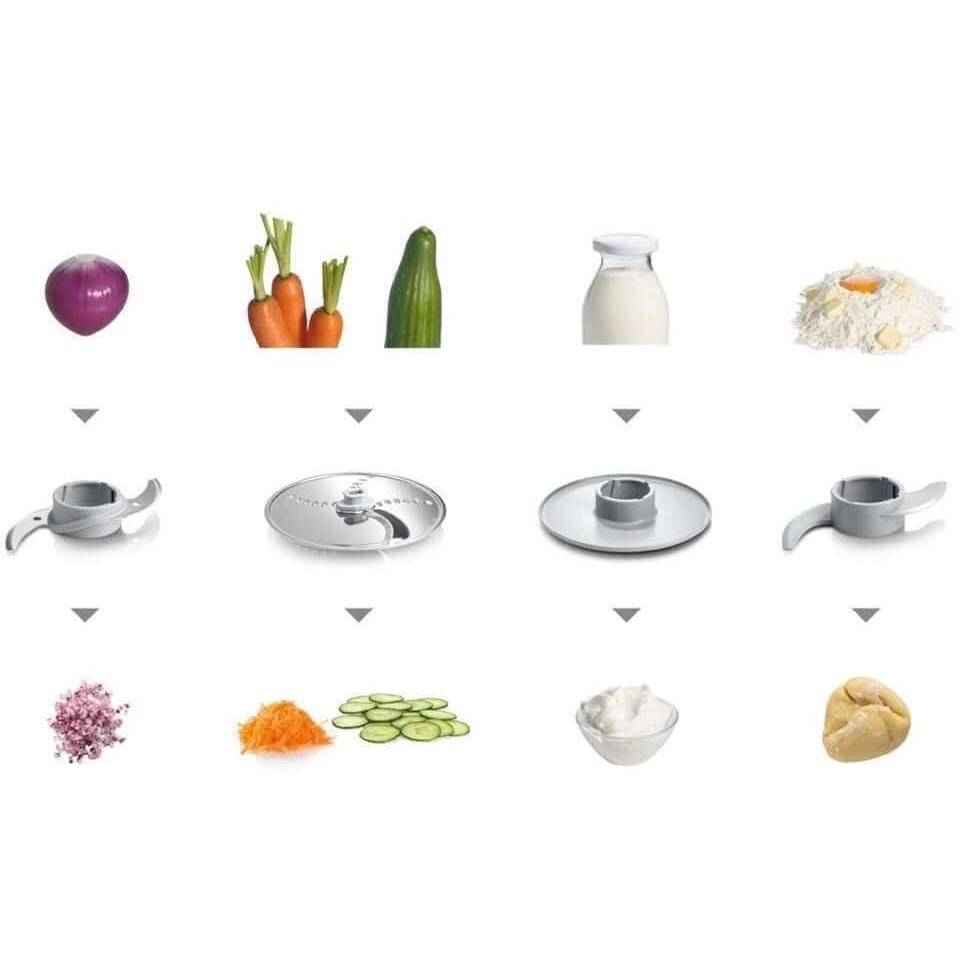 - Hơn 20 chức năng: xay nhỏ rau củ trái cây, cắt lát, bào, nhào bột... MCM3100W đúng thật sự là 1 chiếc máy mơ ước của chị em nội trợ.