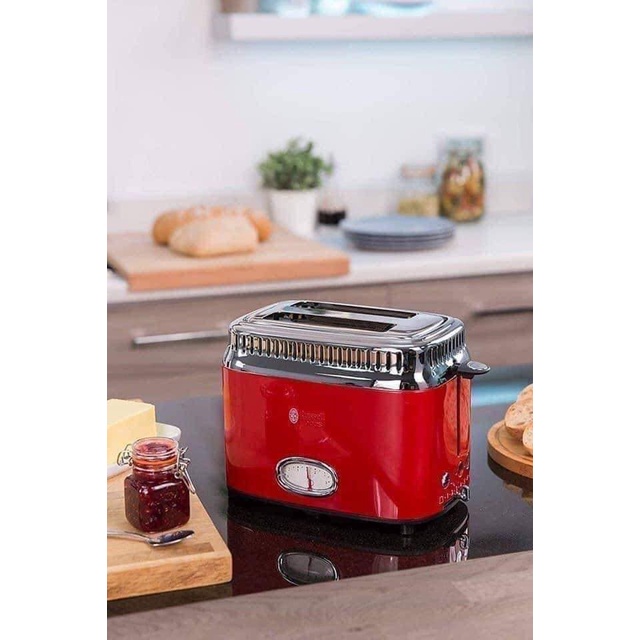 MÁY NƯỚNG BÁNH MÌ Russell Hobbs Toaster Retro màu đỏ💫Bắt đầu bữa sáng của cả gia đình bạn một cách nhanh chóng và tiện lợi hơn với máy nướng bánh thương hiệu Russell Hobbs