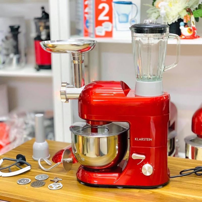 - Máy làm bếp đa năng Klarstein Lucia Morena 1200w, 5 lít thoải mái đánh trứng, trộn bột làm bánh, xay thịt nhanh chóng tối đa đến 2kg bột, thịt.