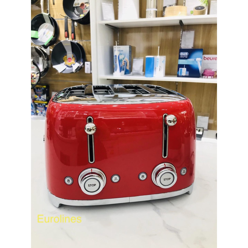 MÁY NƯỚNG BÁNH MÌ SMEG TSF03RDEU 4 khe nướng👉👉👉 Máy nướng bánh mì SMEG giúp bạn có thể dễ dàng nướng giòn bánh, làm nóng bánh sand which để có ngay bữa sáng chuẩn dinh dưỡng, chất lượng ngay tại nhà với gấp đôi khe nướng. :Giúp các thành viên trong gia đình có bữa sáng quây quần và đảm bảo hơn, ngon hơn ở tiệm. Giúp gắn kết gia đình bạn hơn.