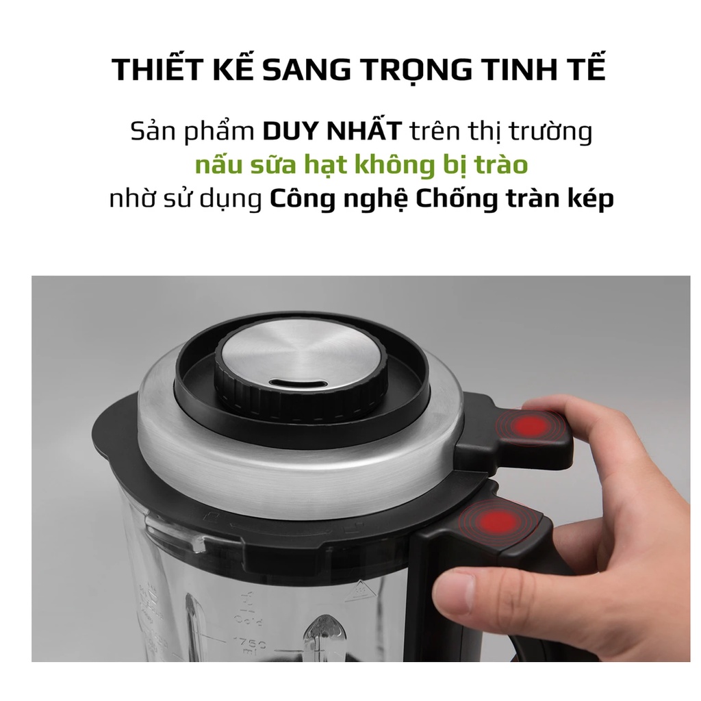Nấu sữa hạt KHÔNG TRÀN với công nghệ CHỐNG TRÀN KÉP Hiệu Quả Đến 1,5lit (86% Dung tích cối)→ NẤU ĐƯỢC NHIỀU HƠN