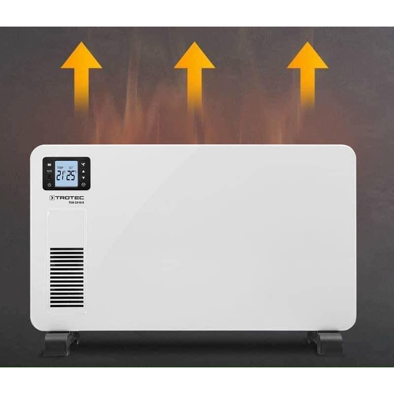 MÁY SƯỞI BẢNG ĐỐI LƯU TROTEC TCH 2310 E MODEL 2021Máy sưởi bảng Trotec TCH 2310 E là dòng máy sưởi đời mới sử dụng hiệu ứng của nhiệt đối lưu đồng đều nhanh chóng làm ấm tất cả các mặt không gian, thậm chí ở Châu âu nó được dùng như 1 thiết bị dự phòng để thay thế cho hệ thống sưởi chính trung tâm khi hệ thống này bị hỏng hóc hoặc gián đoạn.