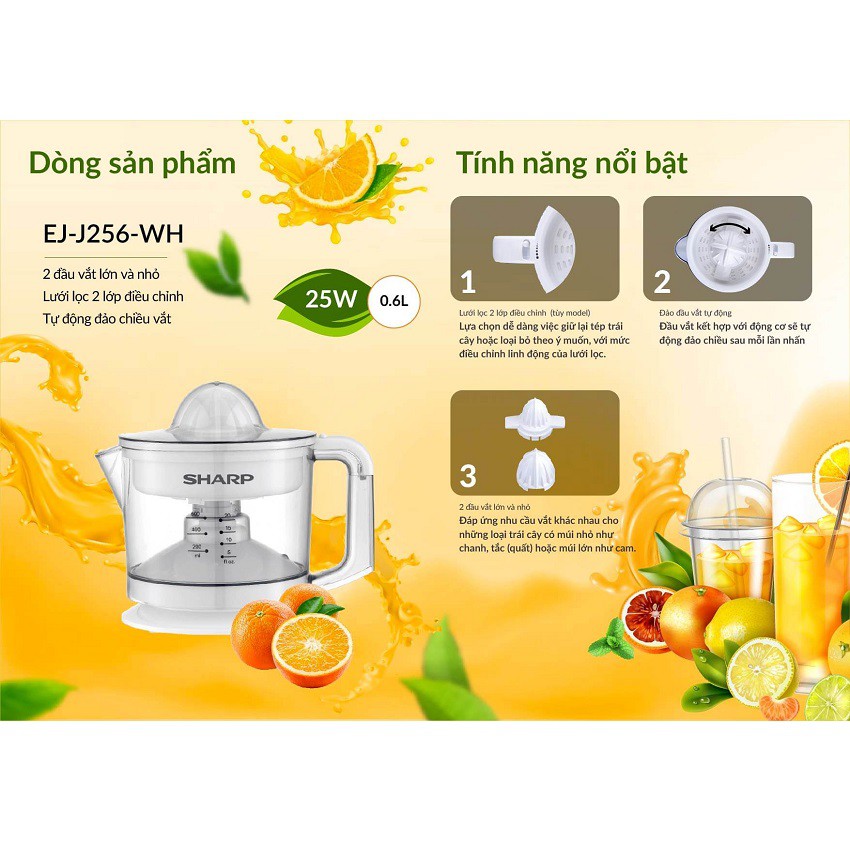 Giới thiệu [Mã ELHA03 giảm 5% đơn 300K] Máy Vắt Cam Sharp EJ-J256-WH 25 W - Hàng Chính Hãng Bảo Hành 12 Tháng