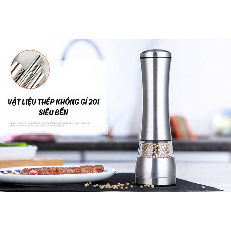 Máy Xay Tiêu Cầm Tay được làm bằng thép không gỉ và vật liệu acrylic cao cấp, bền bỉ, cho tuổi thọ sử dụng lâu dài.