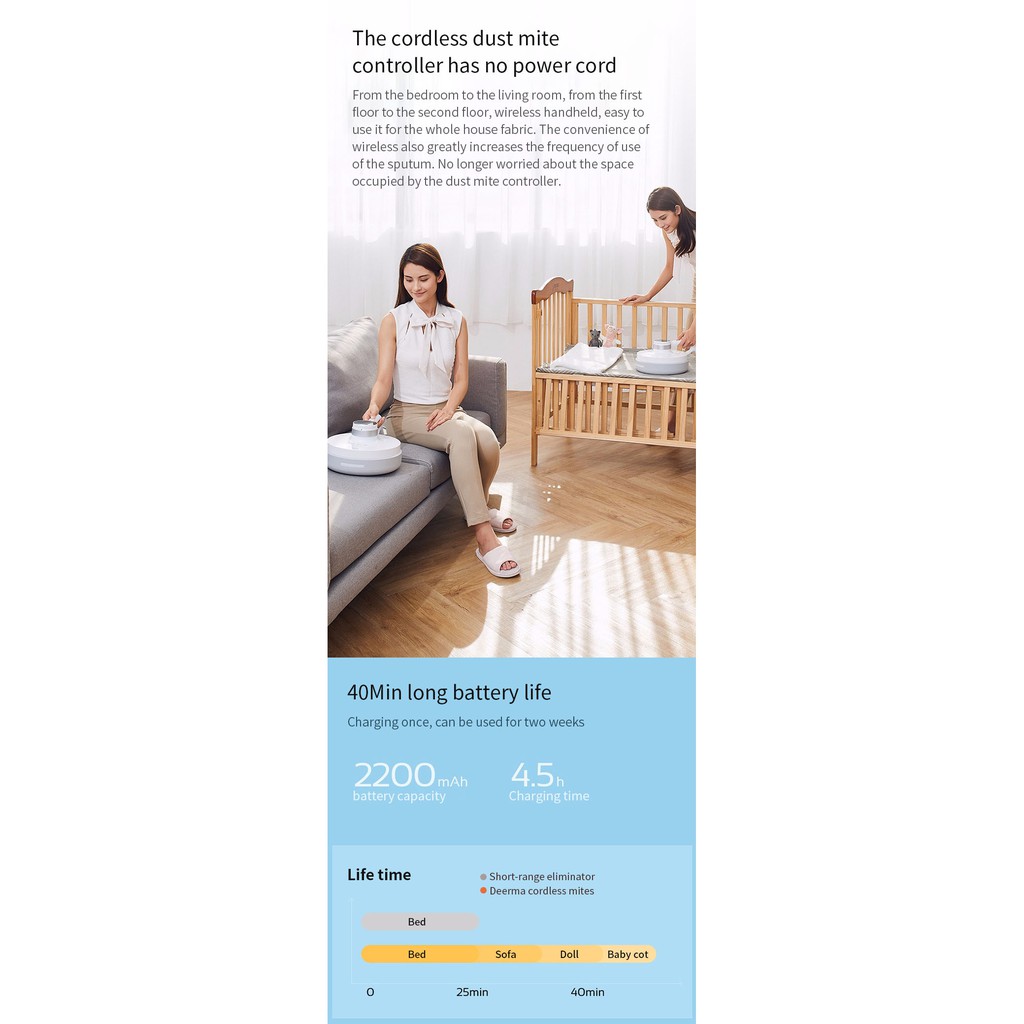 Giới thiệu Máy bụi bụi giường nệm loại bỏ Mite cầm tay (Sạc pin) Deerma CM2200