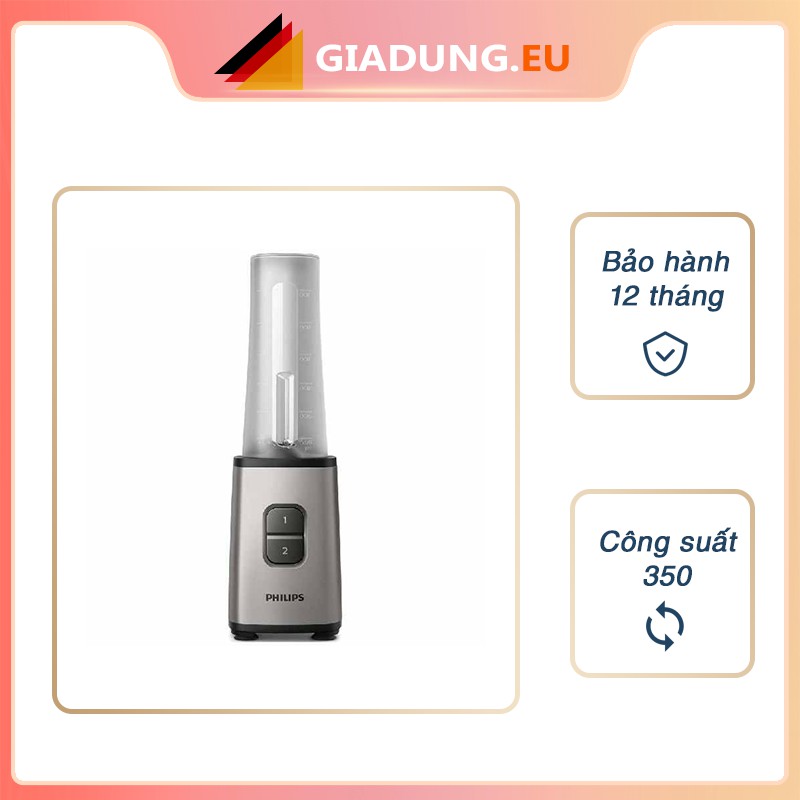 Máy xay sinh tố và mang đi Philips HR2600/80 thiết kế gọn nhẹ, cực kì tiết kiệm không gian trong nhà bếp và thích nghi với lối sống đô thị hiện đại. Bình xay sinh tố có thể tháo rời lắp chặt và mang theo đi làm, đi học hoặc khi đi chơi thể thao - Bất cứ nơi đâu bạn cũng có thể thưởng thức món đồ uống sinh tố yêu thích của mình.♻️ Với công suất 350W, tốc độ 21.080 => 28.520 vòng/ phút và 4 lưỡi dao được làm bằng chất liệu thép không gỉ chất lượng cao sẽ giúp bạn có ngay những cốc sinh tố trái cây chỉ sau 30 giây.