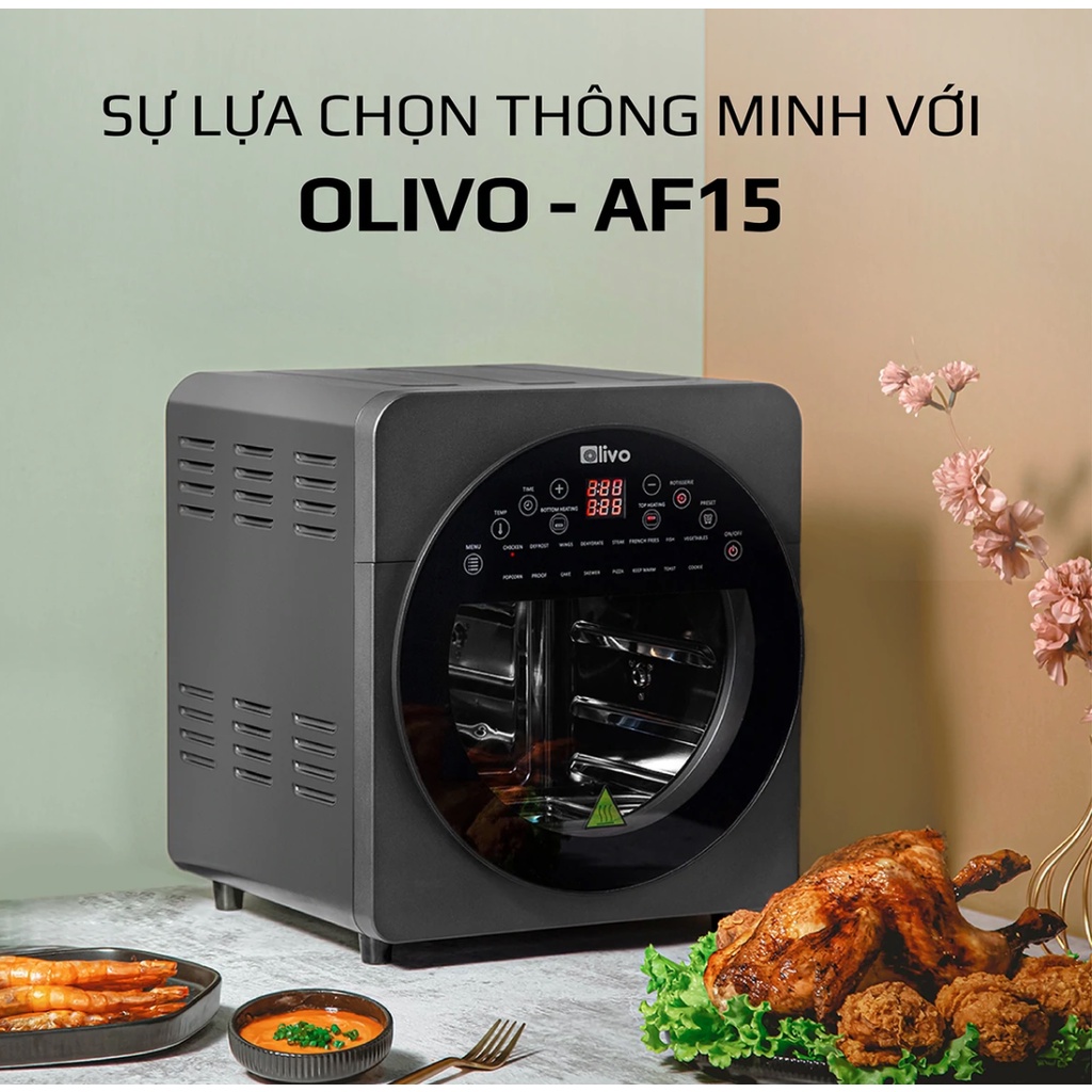 Giới thiệu [Mã ELHAMS5 giảm 6% đơn 300K] Nồi Chiên Không Dầu OLIVO AF15 - Dung Tích 15L