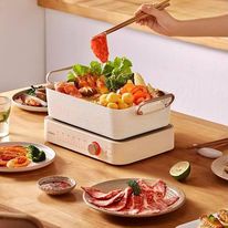 Nồi đa năng Ceramic Elcook 2 in 1- Muốn NƯỚNG có nướng, muốn LẨU có LẨU👉Thiết kế gọn gàng và sang trọng với tone màu be phù hợp với mọi không gian bếp, một bộ gồm 1 bếp, 1 nồi nướng, 1 nồi lẩu và 1 nắp kính.