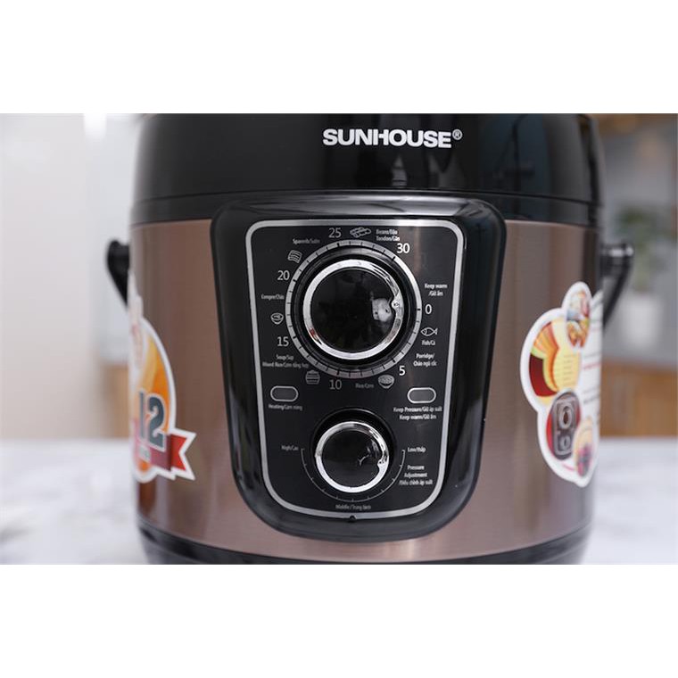 Nồi áp suất điện đa năng 5L Sunhouse SHD1659Nồi áp suất điện, 8 chức năng, sử dụng đơn giản với nút vặn hướng dẫn tiếng Việt.