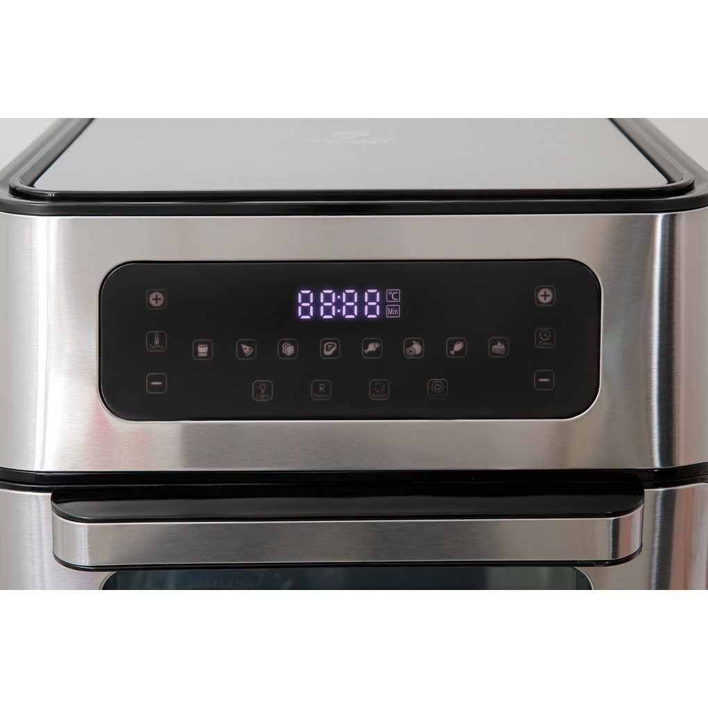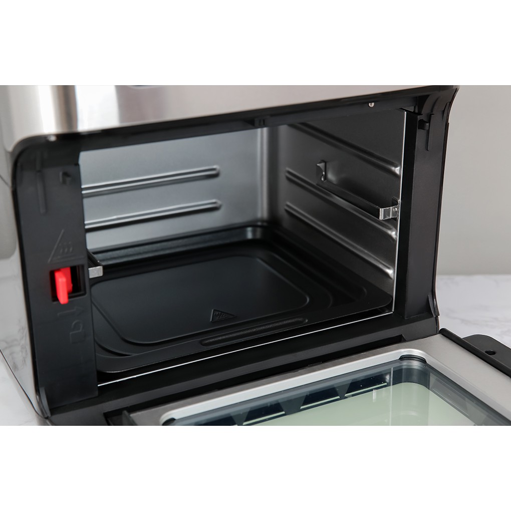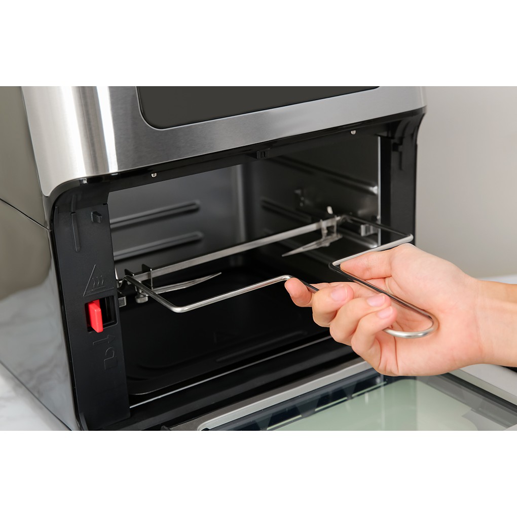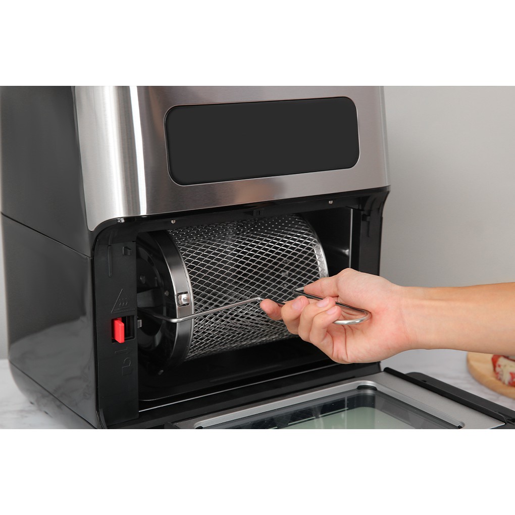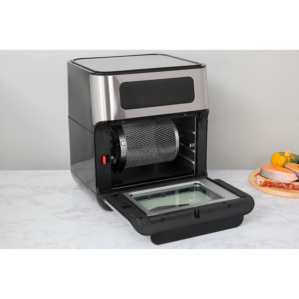 Dung tích 10 lít, công suất 1500W cho phép chiên, nướng nhanh chóng lượng lớn thức ăn.