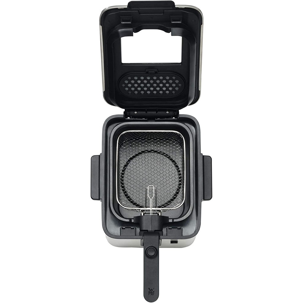 Nồi chiên ngập dầu WMF mini nhỏ và có dung tích từ 0,8 - 1,0 L, do đó rất lý tưởng cho những căn bếp nhỏ. Một màn hình trong chảo chiên hiển thị điểm tối thiểu và cao nhất. Khi sử dụng mỡ rắn, chúng phải được cắt thành từng miếng nhỏ. Nhiệt độ phải được đặt ở 150 ° C cho đến khi chất béo tan chảy hoàn toàn.