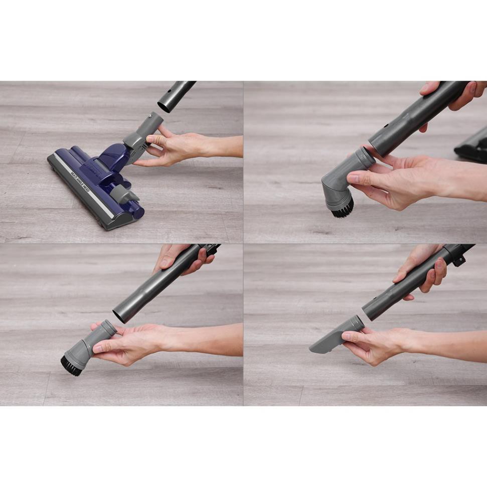 3 đầu hút thay thế gồm: Đầu hút sàn, đầu hút bụi, đầu hút khe cho việc dọn dẹp hiệu quả hơn.