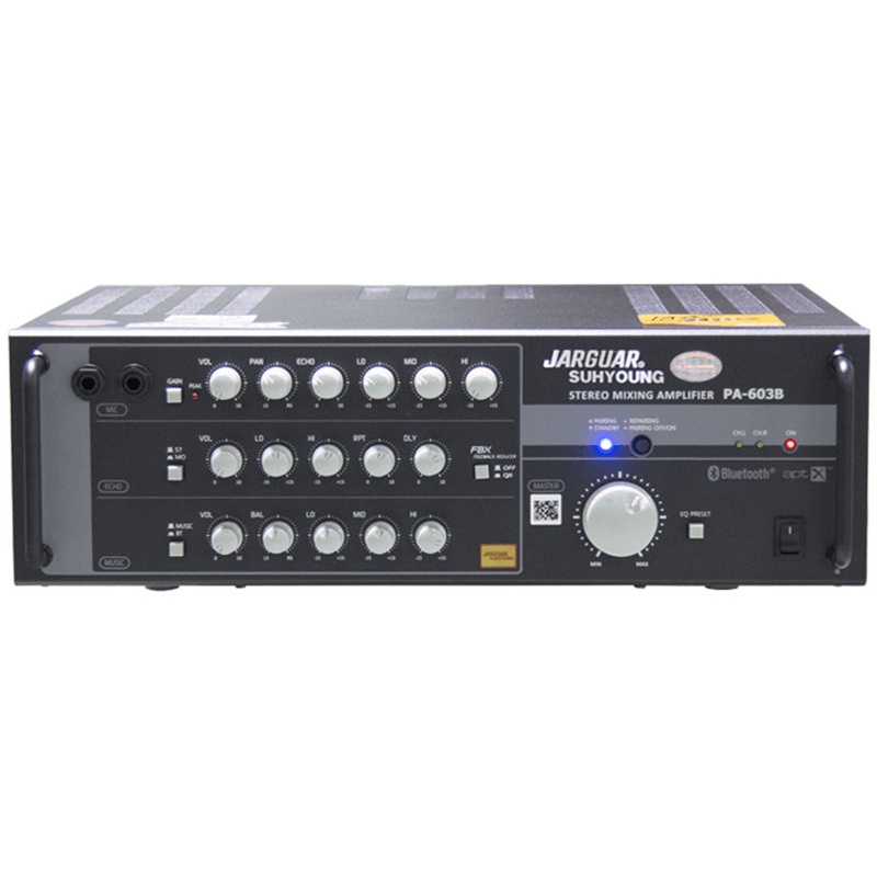 Amply là thiết bị có vai trò quan trọng trong các dàn âm thanh như: dàn karaoke, dàn nghe nhạc, dàn xem phim… Amply Jarguar Suhyoung PA-603B có vai trò xử lý âm thanh để mang tới cho người dùng chất âm vượt trội, tạo nên dàn âm thanh giải trí đỉnh cao, phục vụ mọi nhu cầu chơi nhạc của khách hàng.