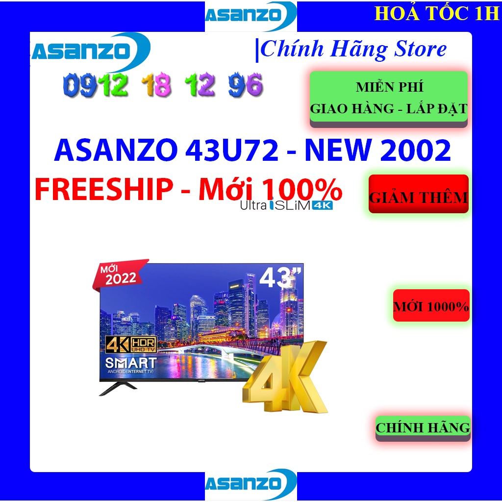 [Mã ELHAMS5 giảm 6% đơn 300K] Smart Tivi Islim Asanzo 4K 43 Inch 43U72, NEW 2022