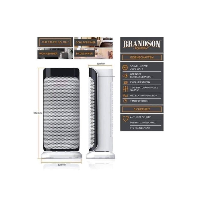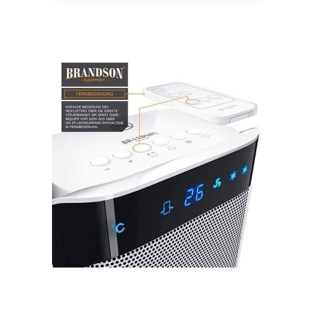 🌈Brandson - quạt sưởi có điều khiển từ xa - quạt sưởi gốm phòng tắm tiết kiệm năng lượng yên tĩnh - lò sưởi nhanh với chức năng dao động - 2 x cài đặt nhiệt - hẹn giờ - Máy sưởi nóng - Chứng nhận GS.