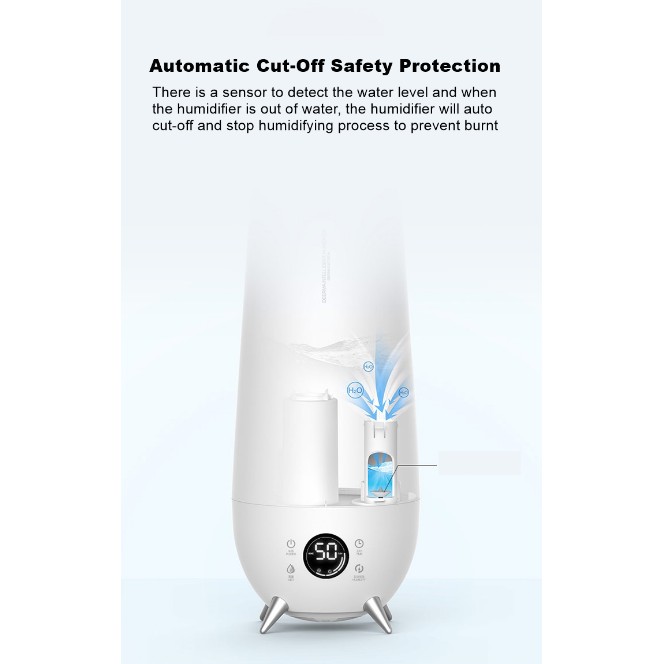 ● Bảo vệ an toàn khi thiếu nước: Máy sẽ tự động ngừng tạo ẩm khi phát hiện thiếu nước, đảm bảo an toàn cho người sử dụng.