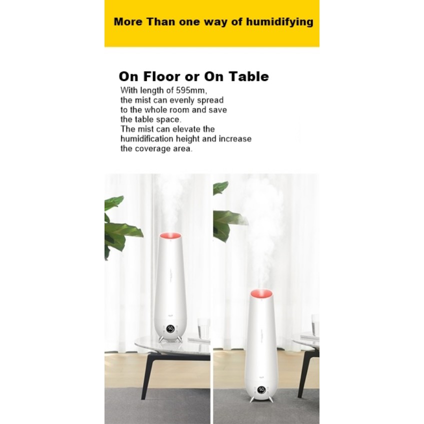 ● Mục đích kép để bàn / sàn: Chiều cao của thân máy bay 595mm không chiếm không gian bàn. Đặt máy tạo ẩm trên mặt bàn để nâng cao chiều cao tạo ẩm và đường lưu thông hơi sương trở nên lớn hơn.