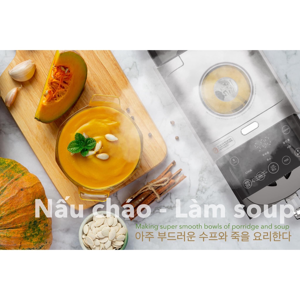 ⏩ Các chương trình tự động và linh hoạt với nhiều nhu cầu: Nấu nhanh, Sinh tố, Làm Sữa, Cháo súp, pha cà phê, Xay khô, Vệ sinh.