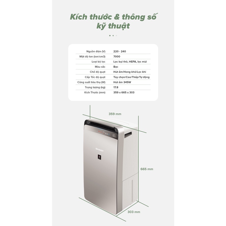 Giới thiệu [Mã ELHA10 giảm 6% đơn 5TR] Máy hút ẩm và lọc không khí Sharp DW-J27FV-S (68m2)