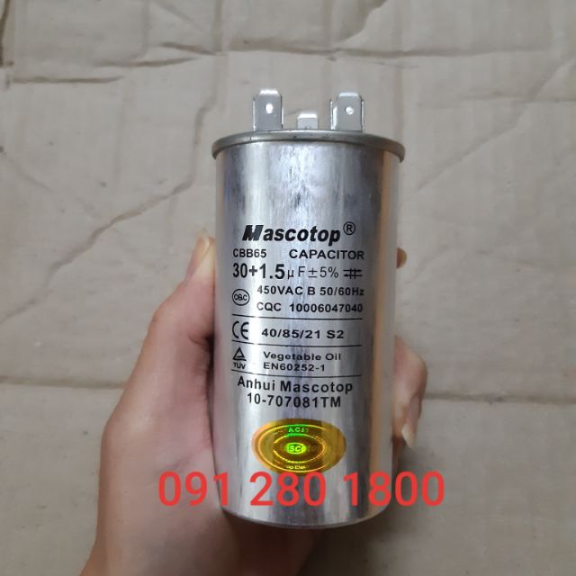 - Chỉ số 30+1,5uf +-5%, 450VAC B 50/60HZ