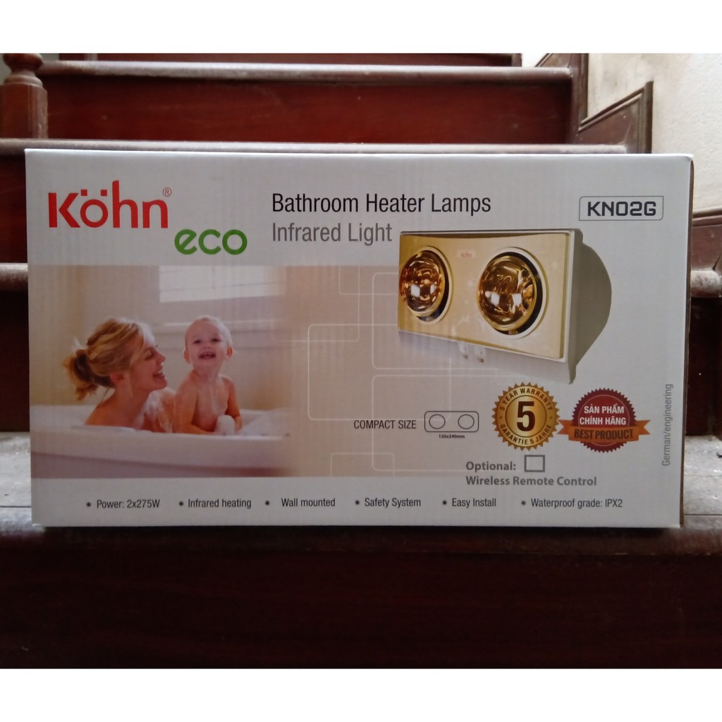 Giới thiệu Bảo hành 5 năm - Đèn sưởi nhà tắm 2 bóng Kohn ECO KN02G
