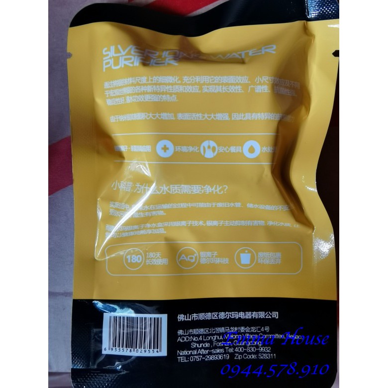 - Model: Thanh Lọc Khử Khuẩn iOn Ag+ 180days