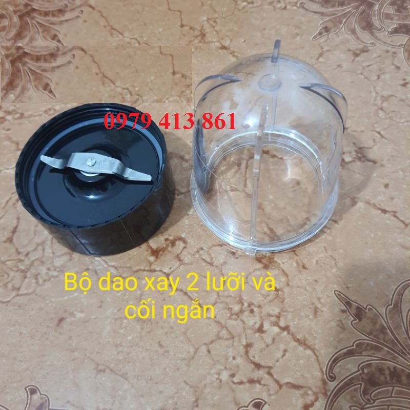 Cụm dao 2 lưỡi và cối dùng cho máy xay đa năng: magic bullet, magic one, kenwood, diamond, chiyoda, suhouse, kanggaro, comet, okusanno, eneck... và rất nhiều máy có phụ kiện tương tự.Trong quá trình sử dụng máy xay dễ dẫn tới tình trạng dao bị cùn, vỡ cối hoặc mòn các bánh răng.