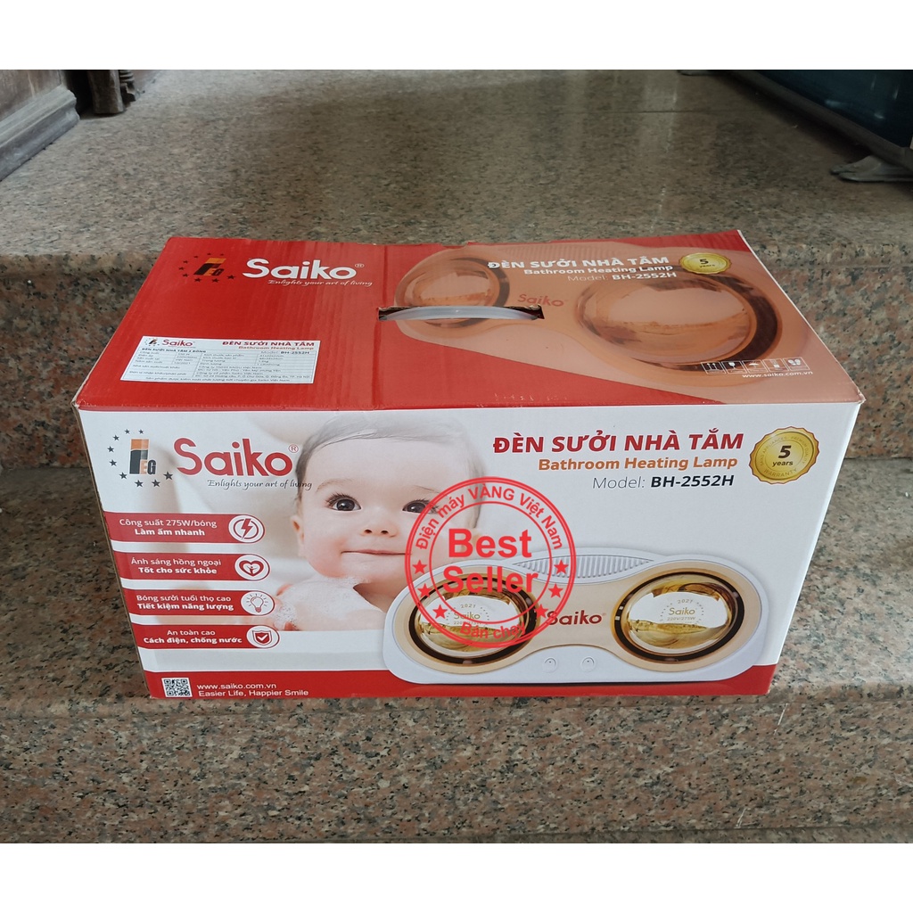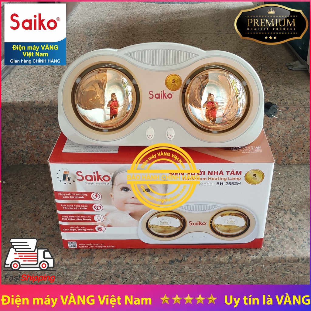 Đèn sưởi nhà tắm Saiko 2552H đèn sưởi 2 bóng vàng bảo hành 5 năm