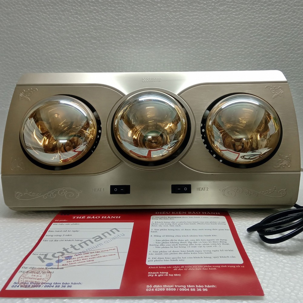 - Công suất: một bóng hồng ngoại là 275W, tối đa 825 W khi bật cả 3 bóng