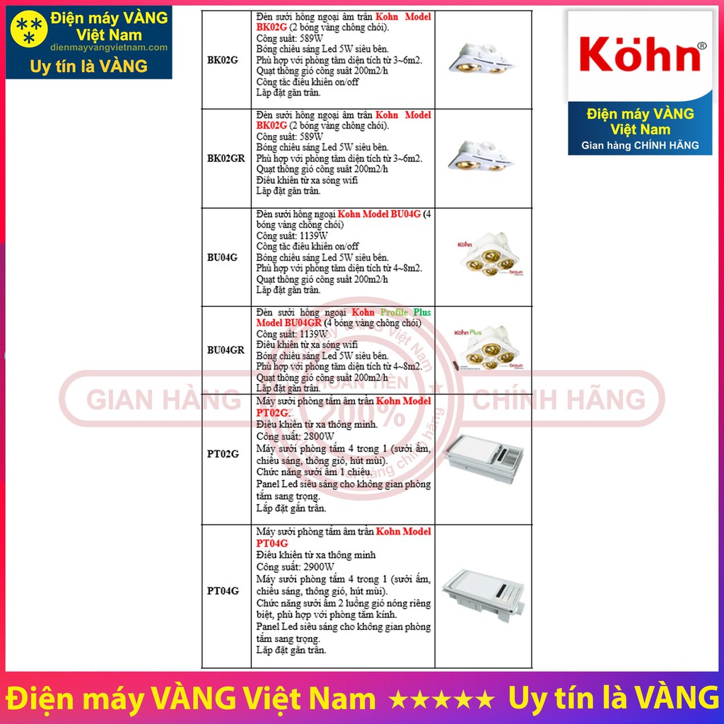 Thương hiệu: Kohn | Xem thêm các sản phẩm Thiết bị sưởi ấm của KohnMô tả ngắn