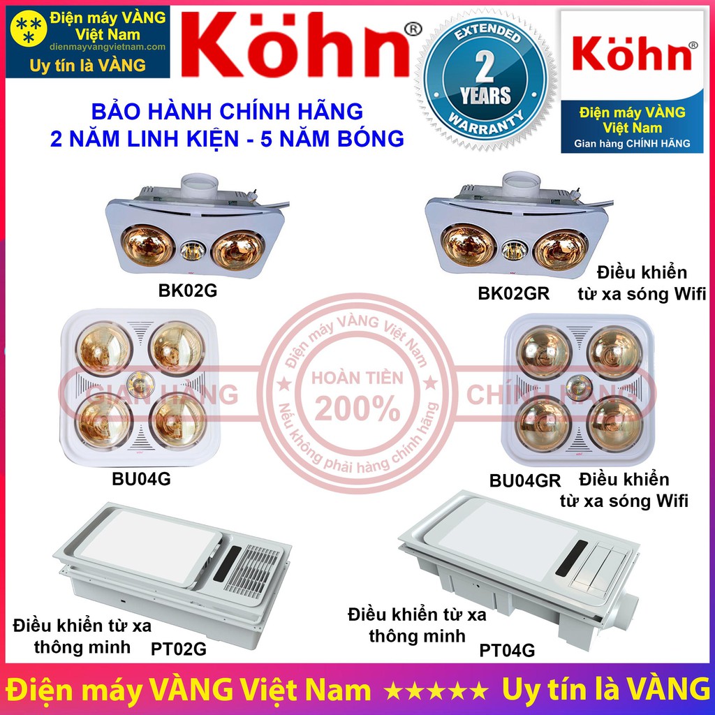 Thiết Bị Điện Gia Dụng > Thiết bị điện gia dụng lớn > Máy sưởi || [Mã ELHA22 giảm 5% đơn 300K] Đèn sưởi nhà tắm âm trần Kohn BK02G BK02GR BU04G BU04GR PT02G PT04G - Hàng chính hãngCòn hàng