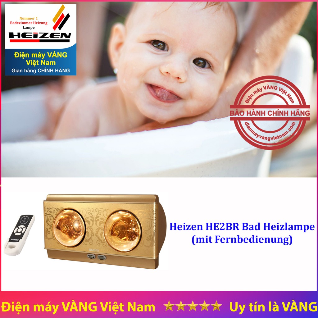 Thiết Bị Điện Gia Dụng > Thiết bị điện gia dụng lớn > Máy sưởi || [Mã ELHA22 giảm 5% đơn 300K] Đèn sưởi nhà tắm 2 bóng vàng Heizen HE2BR (có điều khiển từ xa) [HE-2BR] và HE2BCòn hàng