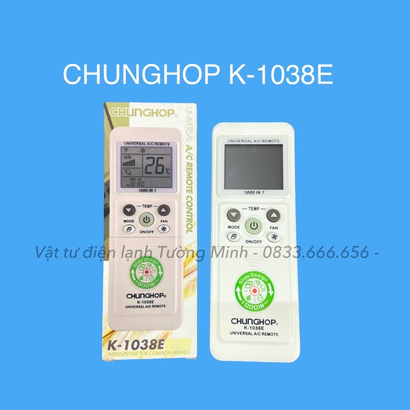 Thiết Bị Điện Gia Dụng > Thiết bị điện gia dụng lớn > Thiết bị làm mát > Điều hòa || [Mã ELHA22 giảm 5% đơn 300K] Điều khiển điều hoà đa năng Chunghop K-1038E lắp trượt bảo vệ bàn phímCòn hàng