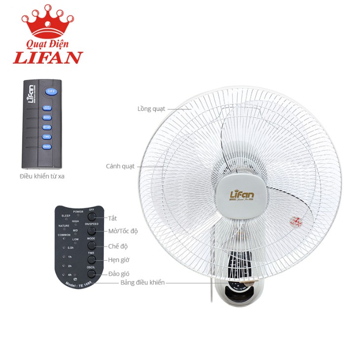[GIẢM 15K CHO ĐƠN 350K] Quạt Treo Tường Remote (Điều Khiển Từ Xa) Lifan TE-1688