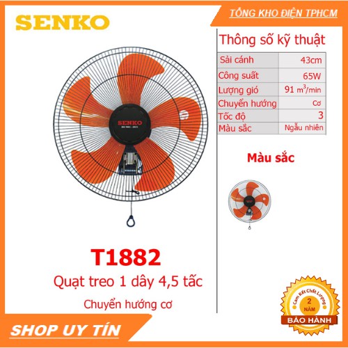 💥CHẾ ĐỘ BẢO HÀNH: 2 NĂMQuạt treo tường công nghiệp Senko T1882 thay thế T18