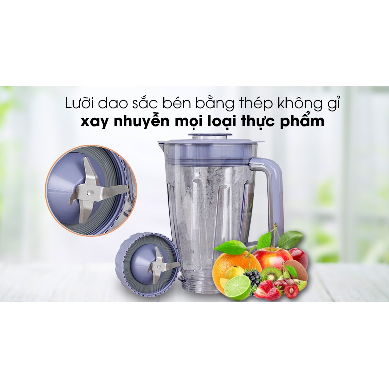 Cối lớn dung tích 1.5 lít xay được 4 – 6 ly sinh tố cho 1 lần dùng.