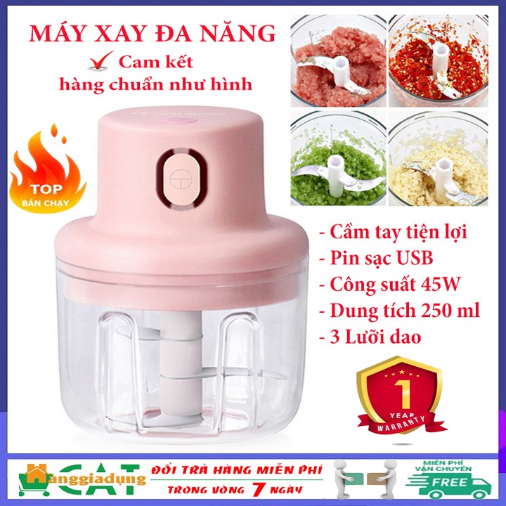 [Hàng loại 1] Máy xay mini cầm tay sạc pin 3 lưỡi dao công suất 45W, dung tích 250ml