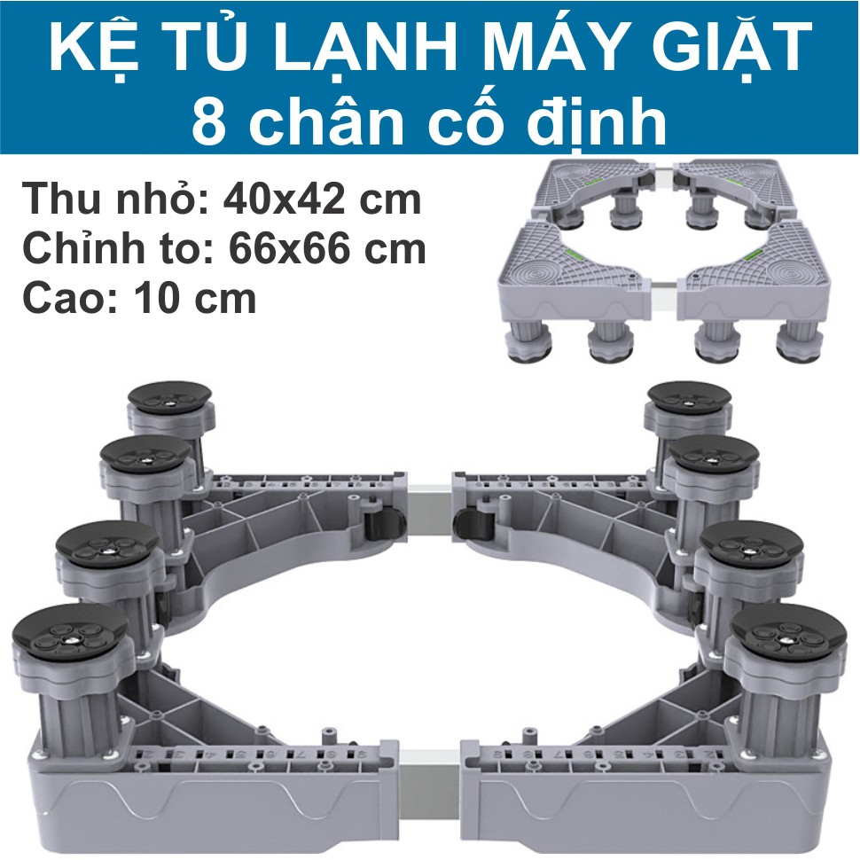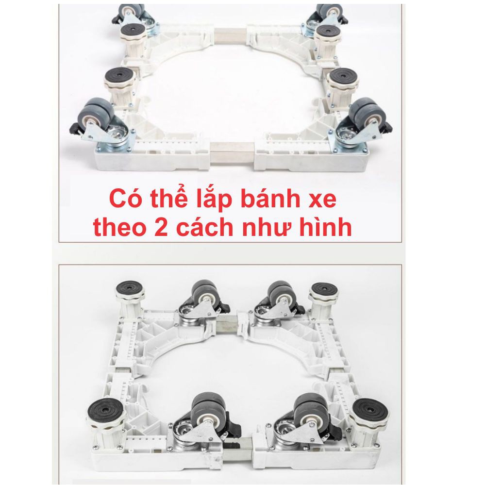 Chân đế có thể thay đổi được cả chiều dài và chiều rộng từ 42-66cm tùy theo kích thước máy giặt, tủ lạnh.