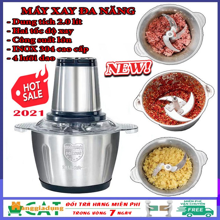 [Loại tốt] Máy xay thịt, máy xay cầm tay đa năng 2 lít công suất lớn cối inox 304 cao cấp
