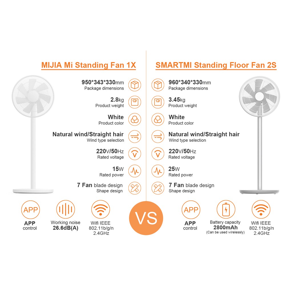 Quạt cây Xiaomi Smartmi Standing Fan 2 (động cơ không chổi than biến tần DC). Đây là phiên bản mới với kiểu dáng thiết kế tương tự như những phiên bản trước, tuy nhiên nó vẫn có một số nâng cấp so với phiên bản trước như: thân cây với bề mặt là nhôm, chiều cao của quạt được nâng lên, độ ồn giảm,v.v...Quạt với 7 cánh, so với các mẫu quạt 3 cánh và 5 cánh truyền thống thì thiết kế 7 cánh cho gió đều và êm hơn, giúp giảm tác động của không khí khối lên mặt và cơ thể. Đồng thời, độ cong của cánh được tối ưu hóa, vì vậy mà với mức tiêu thụ điện năng cức thấp nhưng công suất gió vẫn mạnh. Động cơ DC không chổi than hoạt động với tần số cao, hệ số chuyển đổi điện năng cao, tiết kiệm điện năng (max 20W), tiếng ồn nhỏ (quạt chạy ở tốc độ trung bình có độ ồn là 28.6dB). Quạt được trang bị khả năng tạo ra gió mô phỏng giống với gió tự nhiên, tức là thay vì quạt chạy đều liên tục thì quạt có thể tự đổi tốc độ quay để tạo ra gió theo từng cơn, quy trình này có được là nhờ sự thu thập và phân tích dữ liệu về luồng không khí, sự nhiễu loạn tốc độ gió từ rất nhiều cơn gió tự nhiên khác nhau, và từ đó nhà sản xuất đã cho ra một chương trình thuật toán mô phỏng chính xác nhất để khôi phục gió tự nhiên, các cơn gió tự nhiên sẽ có luồng không khí phong phú và nhẹ nhàng và bùng nổ cho người dùng có cảm giác thoải mái và mát mẻ