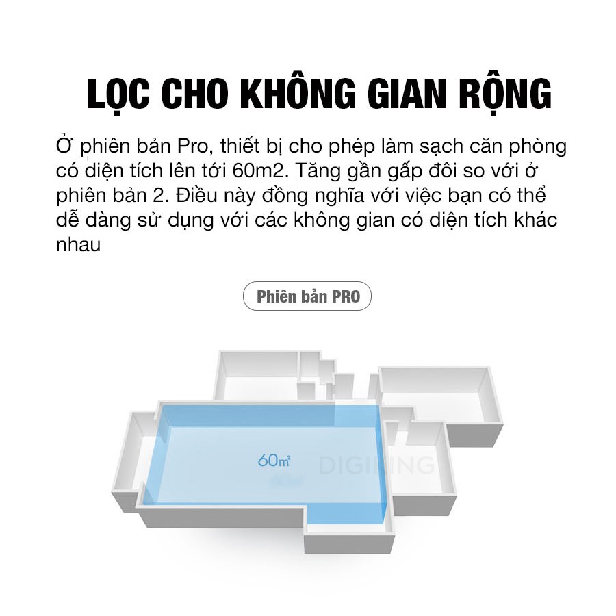 Làm sạch không khí tối ưu nhất trong không gian khoảng 60m2. Khả năng lọc thông minh giúp không khí lưu thông công nghệ 360 giúp phát huy hiệu quả lọc không khí một cách tối đa. Cả căn phòng sẽ được làm sạch nhanh chóng, tràn ngập không khí trong lành.