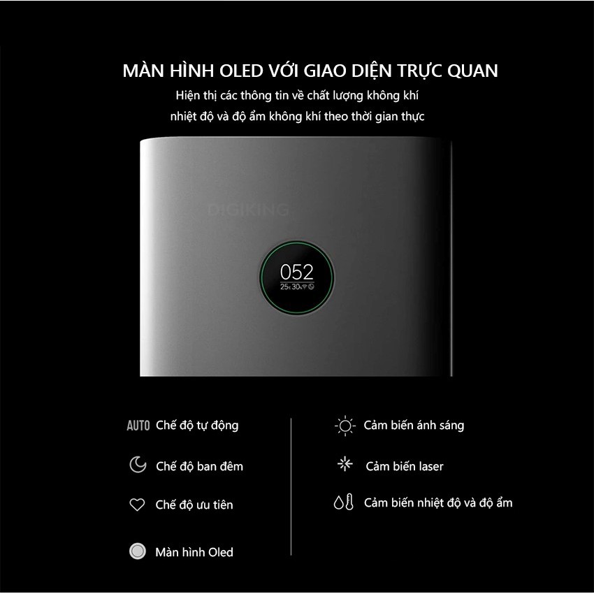 Máy lọc không khí Mi Air Purufier Pro mới kết hợp một màn hình hiển thị chất lượng, màn hình OLED để hiển thị nồng độ PM 2.5, nhiệt độ và độ ẩm, kết nối wifi và các chức năng khác cho phép bạn cảm nhận nhiệt độ và độ ẩm một cách trực quan nhất.
