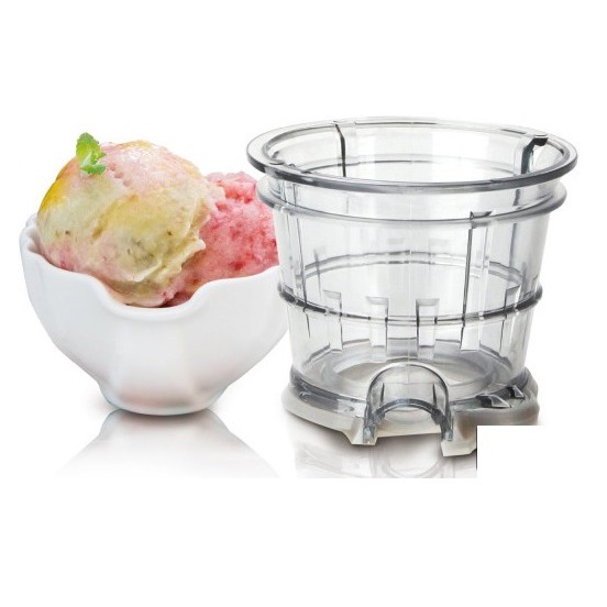 Máy ép trái cây tốc độ chậm Kuvings NS-321CBM2 với lưới làm kem kèm theo sản phẩm, bạn có thể làm kem hoa quả đông lạnh mà không có chất phụ gia và chất bảo quản tại nhà từ trái cây và rau củ quả đã được đông lạnh cho cả gia đình đặc biệt là các bé.