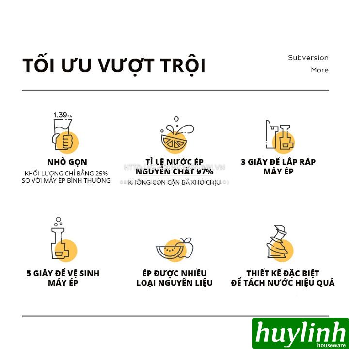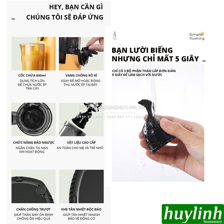 - Lắp ráp vô cùng đơn giản: 3 giây để lắp ráp máy ép