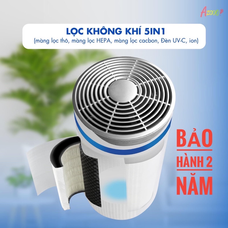 Hệ thống lọc True HEPA 360 độ loại bỏ tới 99,97% các chất gây dị ứng trong không khí nhỏ đến 0,3 microns. Đồng thời máy cũng giúp loại bỏ phấn hoa, bụi, khói, vẩy da thú cưng, bào tử nấm mốc và vi trùng. Tích hợp ánh sáng UV-C giúp tiêu diệt vi trùng, vi khuẩn và virus.