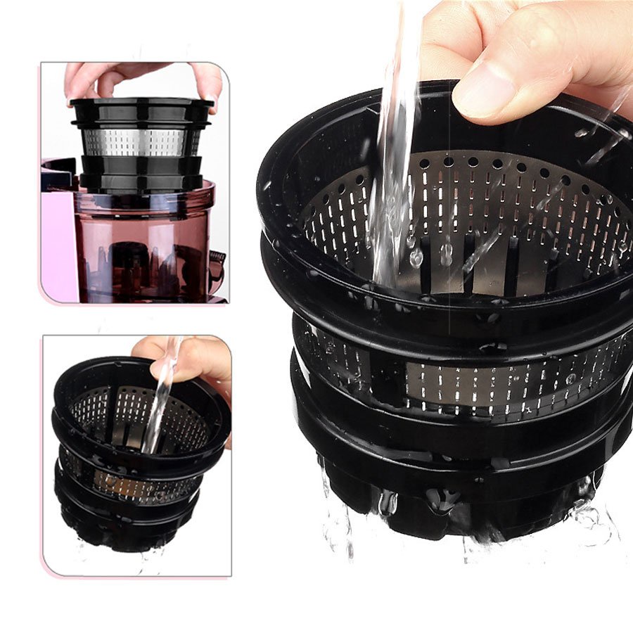 � Thiết kế sang trọng hiện đại bằng chất liệu cao cấp, lưới lọc chất liệu inox 304 an toàn cho sức khỏe. Người dùng có thể hoàn toàn yên tâm sử dụng máy ép để tạo ra những ly nước ép thơm ngon bổ dưỡng cho các thành viên trong gia đình.
