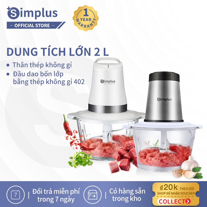 Thiết Bị Điện Gia Dụng > Đồ gia dụng nhà bếp > Máy chế biến thực phẩm & Xay thịt || [Mã ELHA22 giảm 5% đơn 300K] Máy xay thịt Simplus (2L), cối thủy tinh, lưỡi dao thép không gỉ, 2 cấp độ xay tùy chỉnhCòn hàng