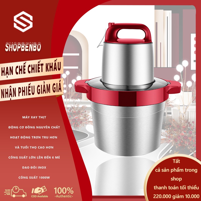 Giới thiệu [Mã ELHA22 giảm 6% đơn 300K] Máy xay thịt 6 Lít máy xay rau củ thịt inox thép không gỉ Máy xay Nồi xay FU66R* shopbenbo