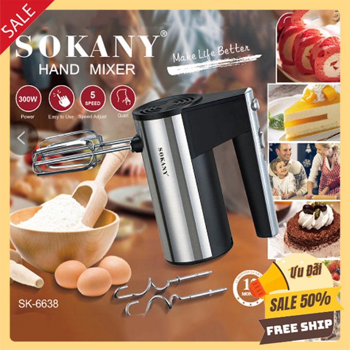 Thiết Bị Điện Gia Dụng > Đồ gia dụng nhà bếp > Máy trộn thực phẩm || [Mã ELHA22 giảm 5% đơn 300K] Máy Đánh Trứng Cầm Tay 5 Cấp Độ SOKANY 300W Kèm 4 Que Trộn INOX Làm Bánh Bông Lan Tại NhàCòn hàng