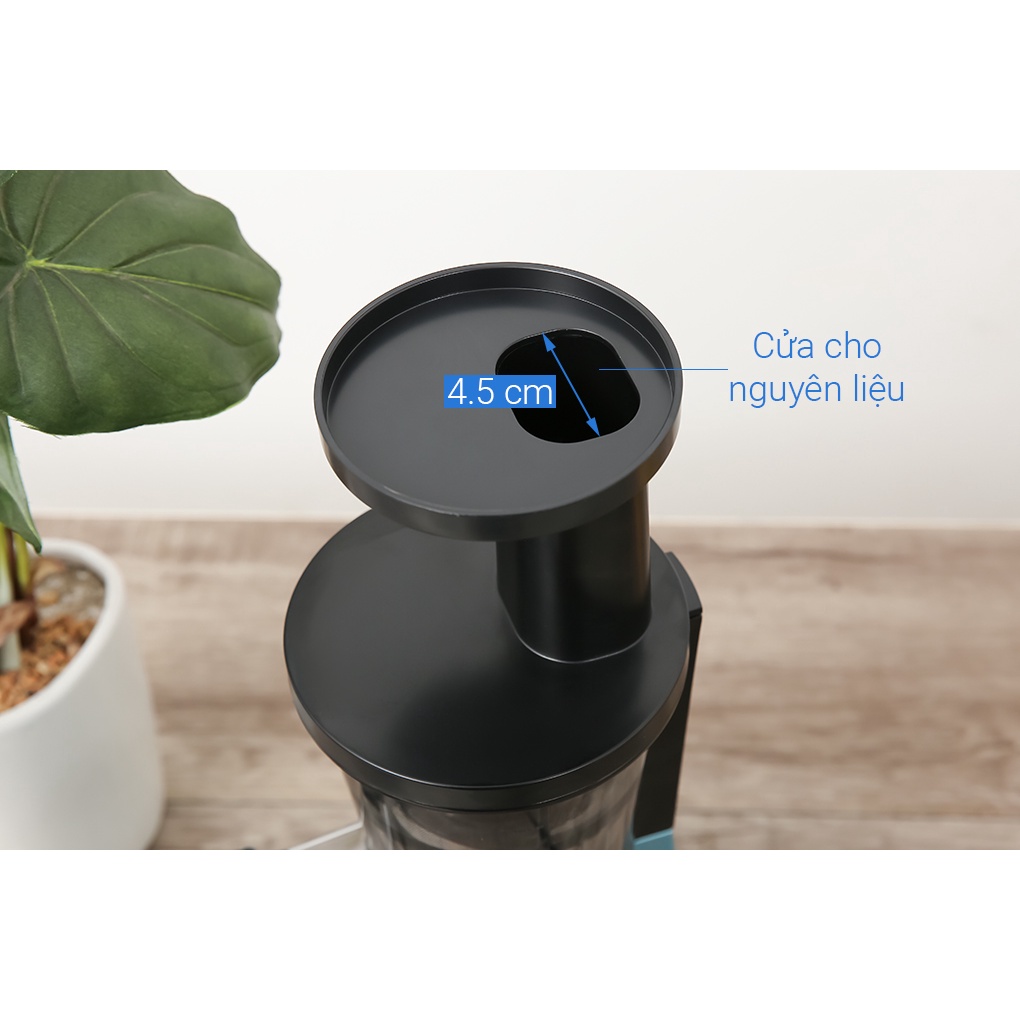 ● Đường kính ống tiếp nguyên liệu 45 x 35 mm, cho phép bạn ép trái cây cỡ nhỏ như dâu tây nguyên trái